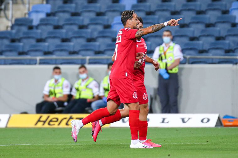 רוקאביצה צופה בשחקני הפועל תל אביב חוגגים (מאור אלקסלסי)