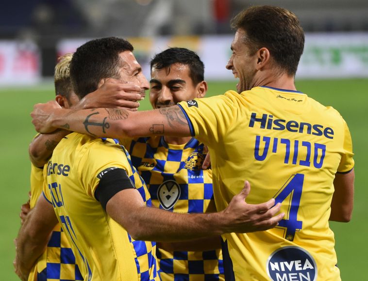 חוזז חוגג עם גולסה את שער הבכורה שלו העונה בליגת העל (דני מרון)