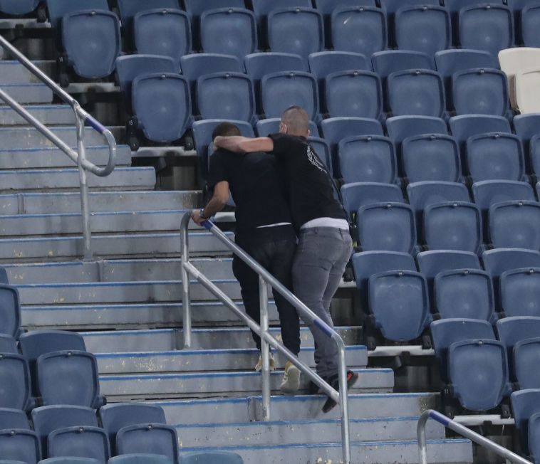 מאבטח מוציא את האוהד שהסתנן ליציע (דני מרון)