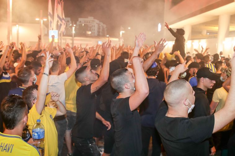 התקהלו בניגוד להנחיות. אוהדי מכבי תל אביב (דני מרון)