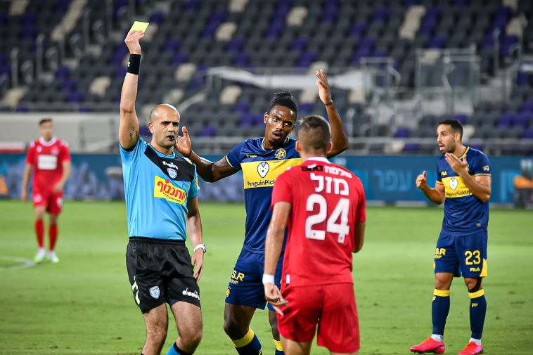 שתי הקבוצות פתחו את המשחק בצורה די זהירה. הצהובים עדיין לא הציגו את הנעת הכדור המסודרת המוכרת שלהם. בדקה התשיעית שביט מזל הצעיר קיבל כדור ליד הרחבה ונפל בלי שז'איר אמאדור נגע בו ולכן ספג כרטיס צהוב מצד דניאל בר נתן. לאט לאט המגנים של מכבי החלו לצאת קדימה.