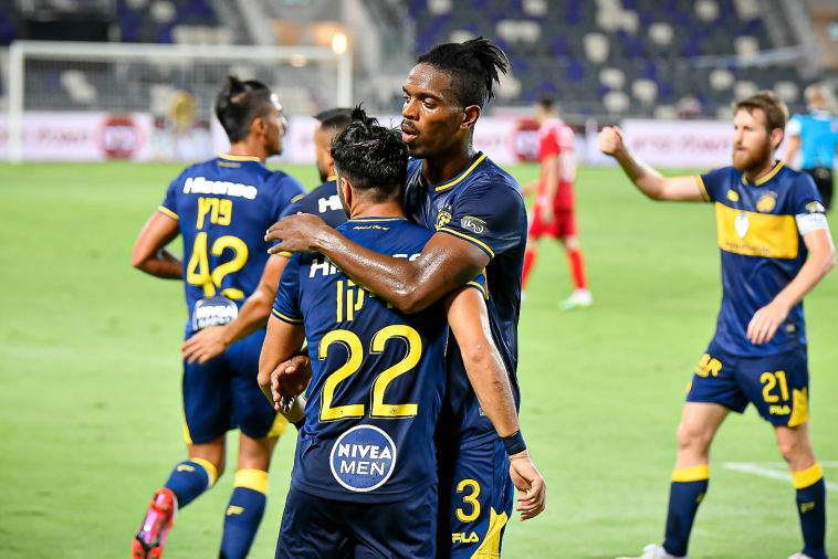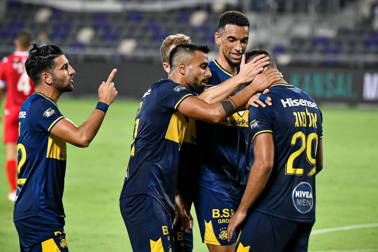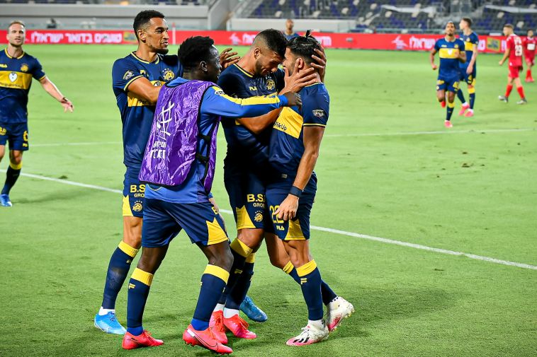 3 מ-3 בדרבי. שחקני מכבי תל אביב חוגגים (אריאל שלום)