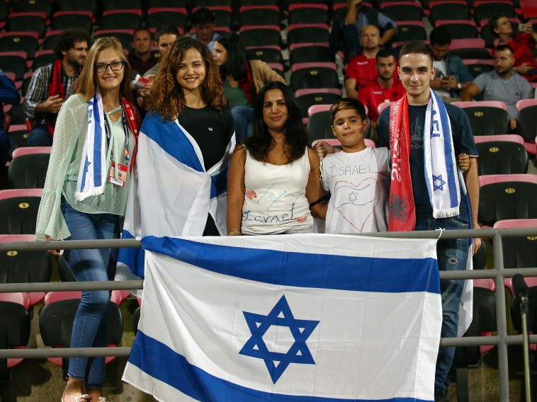 נציגות ישראלית ביציע בטירנה (אודי ציטיאט)