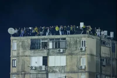 אוהדי בית"ר על הגגות בסמוך לאצטדיון הי"א | לירון מולדובן