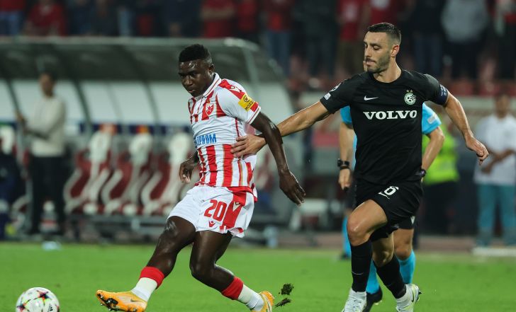 שחקן הכוכב האדום בלגרד, קינגס קאנגווה, ליד שחקן מכבי חיפה נטע לביא | אימג'בנק GettyImages, Srdjan Stevanovic