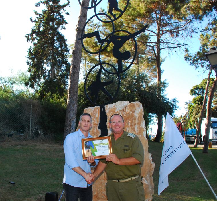 האמן חן וינקלר ואמוץ בכר מנכ"ל מכון וינגייט (רפי כחלון)