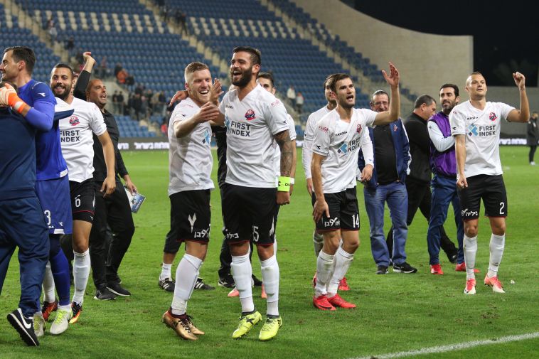יכולים ללכת עד הסוף? שחקני הפועל חיפה חוגגים עם האוהדים (עדי אבישי)