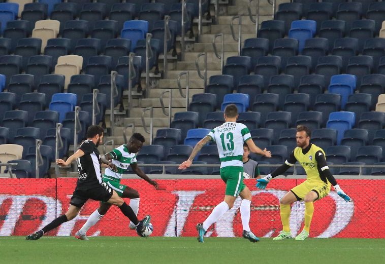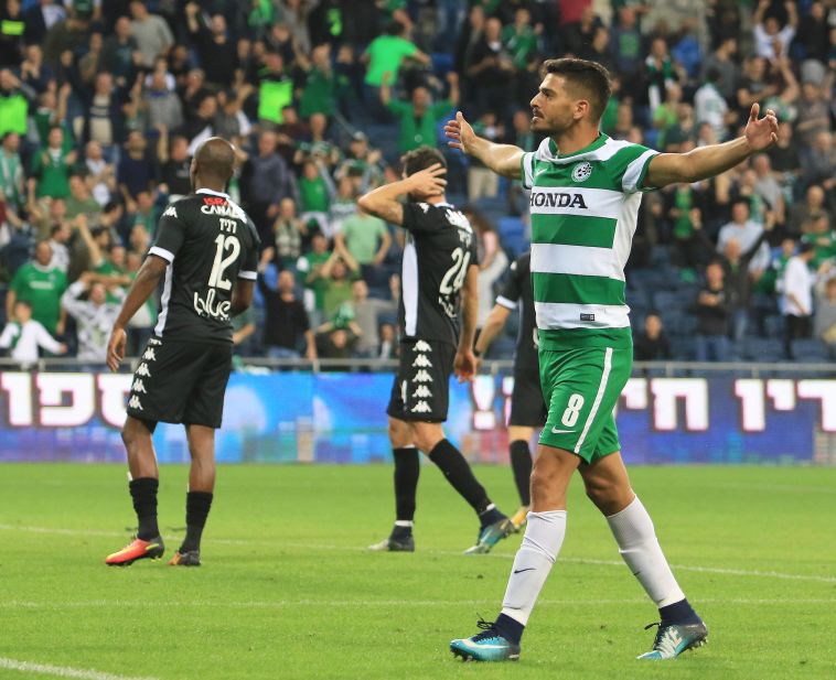 דקה 90, 0:4 למכבי חיפה: צמד למזרחי! החלוץ ניצל עוד טעות של הגנת קריית שמונה המתפרקת כדי להשלים חגיגה ירוקה.