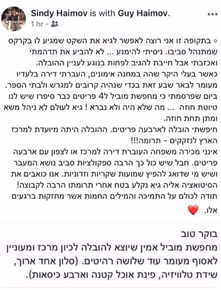 בנושא אחר. סינדי חיימוב, רעייתו של שוער הפועל באר שבע גיא חיימוב, פרסמה היום את גרסתה לפרשת הובלת הרהיטים מדירתם בדרום הארץ ליעד צפוני יותר. בפוסט נוקב שהופיע בחשבון האינסטגרם שלה, הכחישה אשת השוער שנמצא בדרכו אל מחוץ לשערי קבוצתו, את הדיווחים ולפיהם הזמנת המוביל השתלבה כביכול עם תוכניתם לעזוב לקבוצה אחרת.