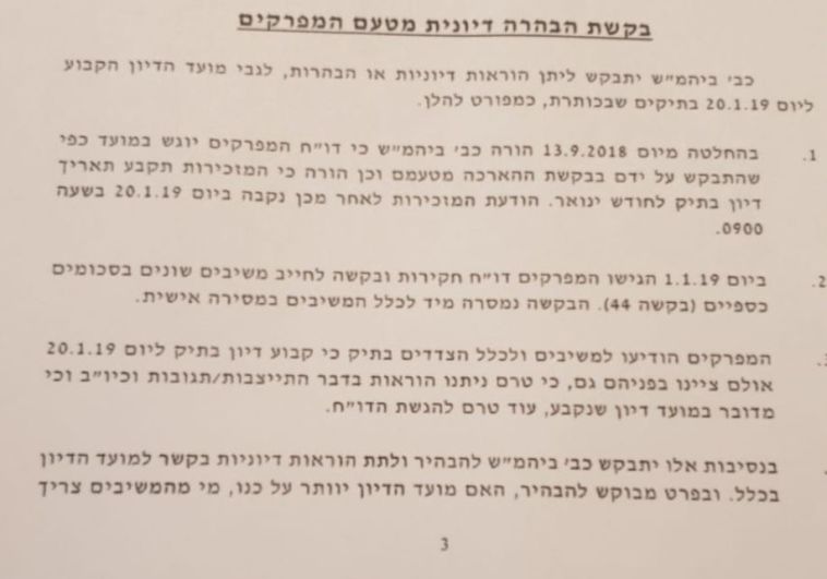 כעת חל שינוי, כשבית המשפט המחוזי והשופט אורנשטיין ביטלו הבוקר את הדיון שתוכנן לעוד עשרה ימים ולא קבעו מועד חדש לקדם את ההליך. ההסבר לדחייה היא שיקול של אורנשטיין.