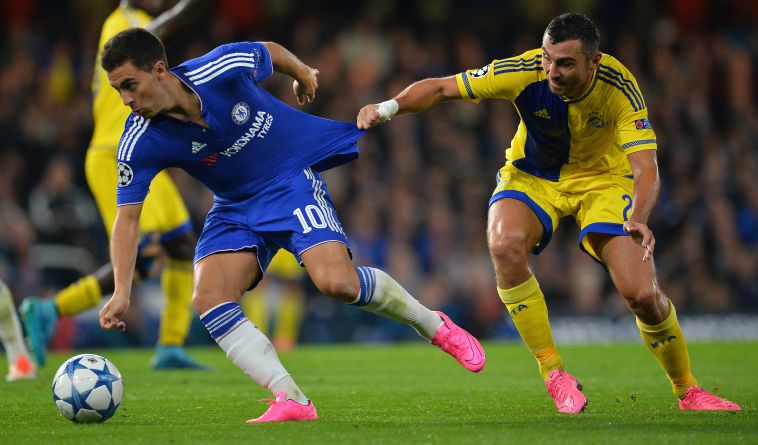 מנסה לעצור את אדן הזאר בליגת האלופות (Gettyimages)