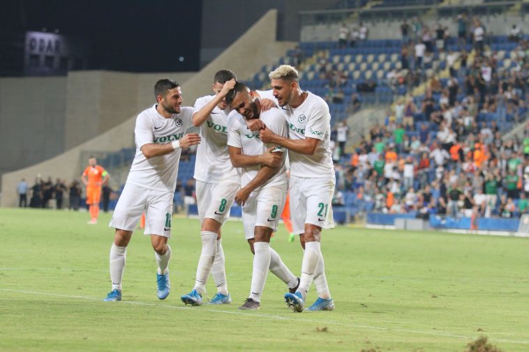 עוואד זוכה לברכות משחקני מכבי חיפה (עדי אבישי)