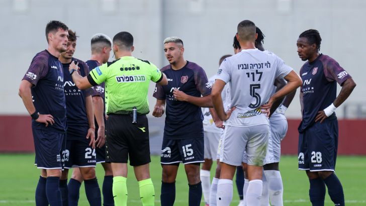 בדרך לחלוקת נקודות? שחקני הפועל ירושלים וחדרה סביב השופט שניר לוי | דני מרון