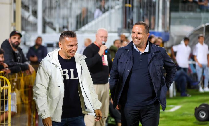 רן בן שמעון מאמן מ.ס. אשדוד עם ברק בכר מאמן מכבי חיפה | לירון מולדובן