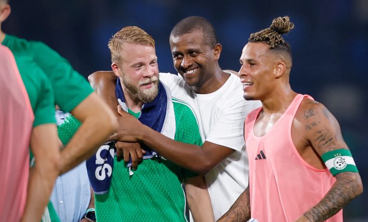 מאמן מכבי חיפה מסאי דגו, עם דניאל סונדגרן, צ'ארון שרי | מאור אלקסלסי