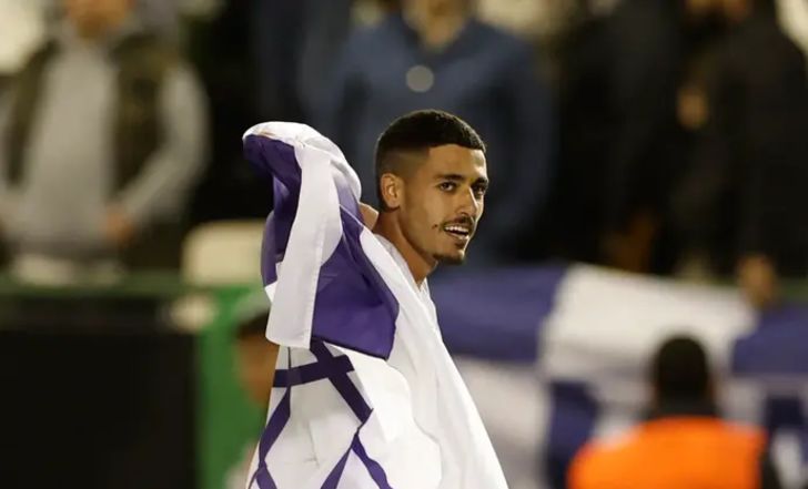 עילאי חג'ג' שחקן מכבי חיפה עם דגל ישראל