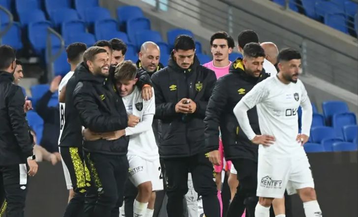 חיבוקים חמים בסיום. שחקני בית"ר חוגגים | ברני ארדוב