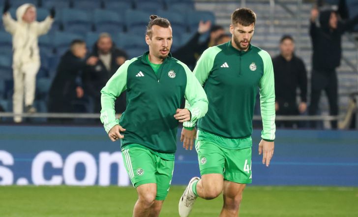 לורנצו שימיץ', שון גולדברג שחקני מכבי חיפה בחימום | דני מרון
