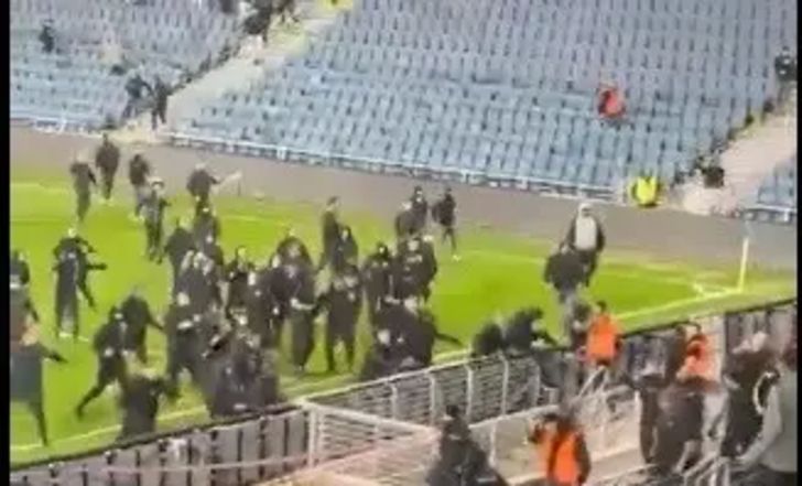 האירוע התחולל כחצי שעה אחרי שהסתיים המשחק, הרבה אחרי שרוב הקהל עזב את שטח האצטדיון, ומדובר היה בעימות בין עשרות אוהדים מכל קבוצה, כשארגוני האוהדים מפרקים את הציוד שהביאו למשחק. לא ברור אם בכלל יצוין בדו"ח השופט ומה משמעותו. המהומה הופרדה מהר מאוד, ולפחות שני אוהדים עוכבו על ידי כוחות האבטחה. העימותים האלימים נמשכו לאחר מכן גם מחוץ לאצטדיון, ובמהלכם נעצרו עוד מספר אוהדים.