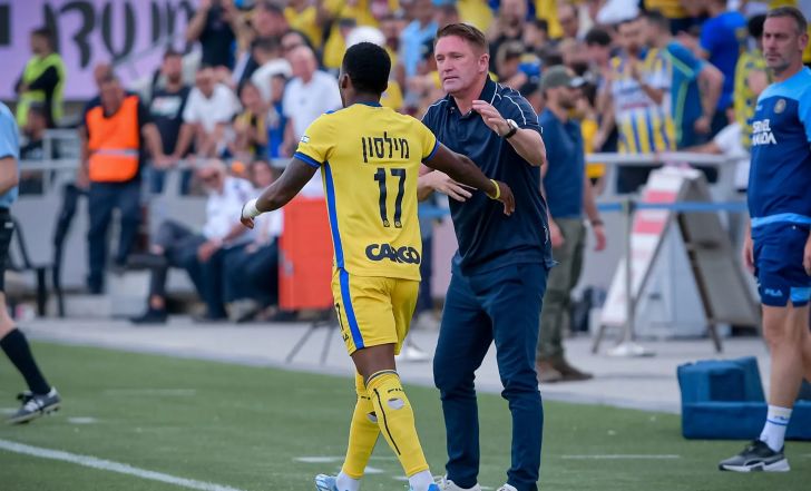 מאמן מכבי תל אביב רובי קין, עם שחקן הקבוצה מילסון | אריאל שלום
