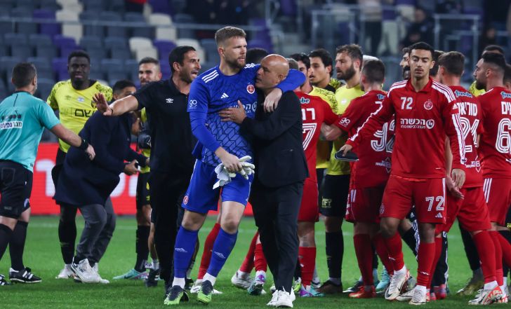 שוער הפועל תל אביב אמיליוס זובאס עם מאמן בית"ר ירושלים יוסי אבוקסיס | דני מרון