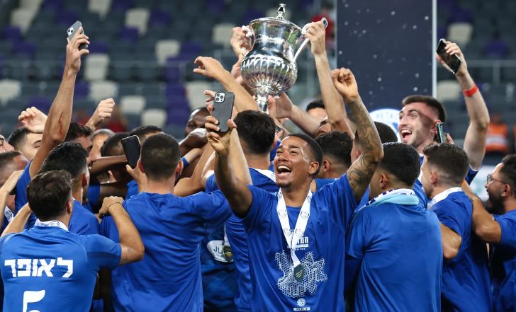 שחקני מכבי פתח תקוה חוגגים את הזכייה בגביע המדינה 2024 | דני מרון