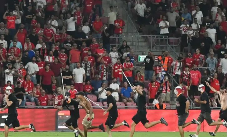 שחקני הקבוצות ירדו לחדר ההלבשה, אבל אחרי שהמשטרה אישרה להתחיל את המשחק, שחקני סכנין סירבו לחזור לכר הדשא בטענה שהם חוששים – והמשחק לא התקיים.