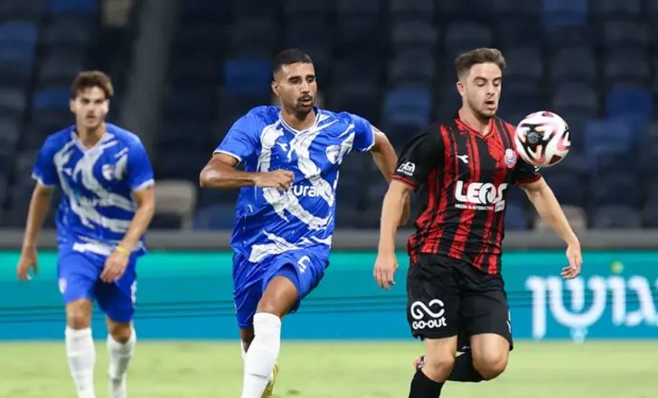 גיא מלמד שחקן הפועל חיפה לפני אופיר בנבנישתי שחקן עירוני קרית שמונה