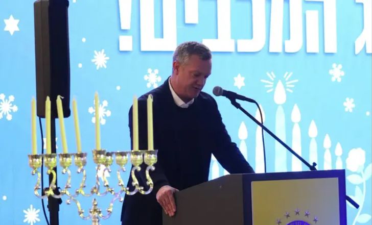 דור פרץ בהדלקת נר חנוכה בבית משפחתו של מני לוי