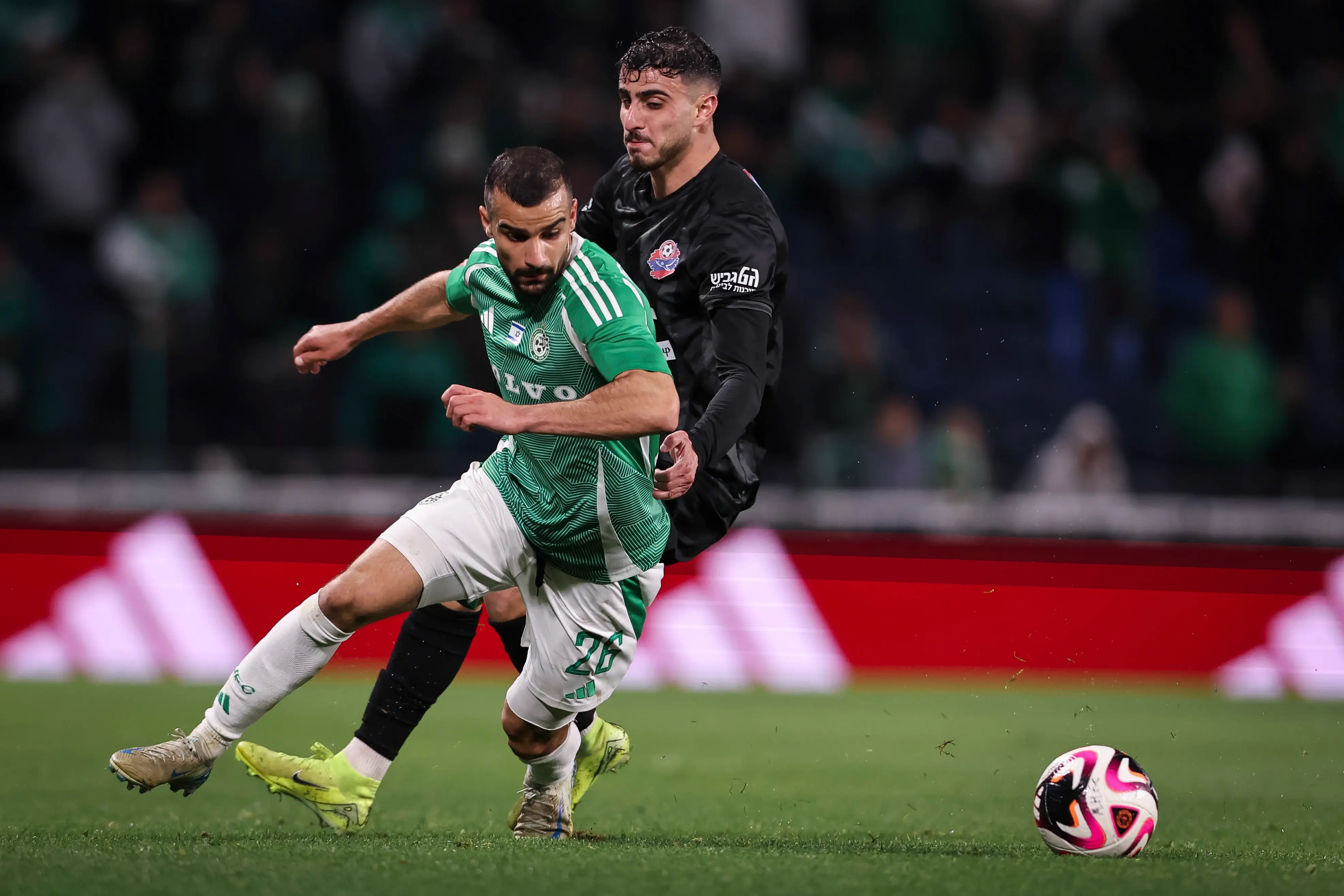 שחקן מכבי חיפה מחמוד ג'אבר, מול שחקן הפועל חיפה, איתי בוגנים | מאור אלקסלסי
