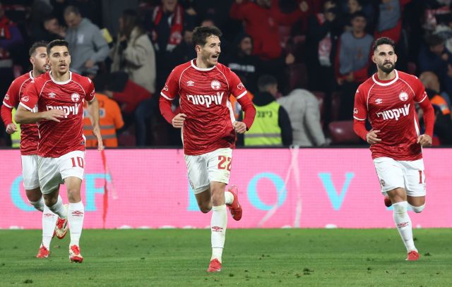 חשבו שהמשחק בידיים שלהם. שחקני מכבי חיפה חוגגים לאחר ה-0:3 | דני מרון