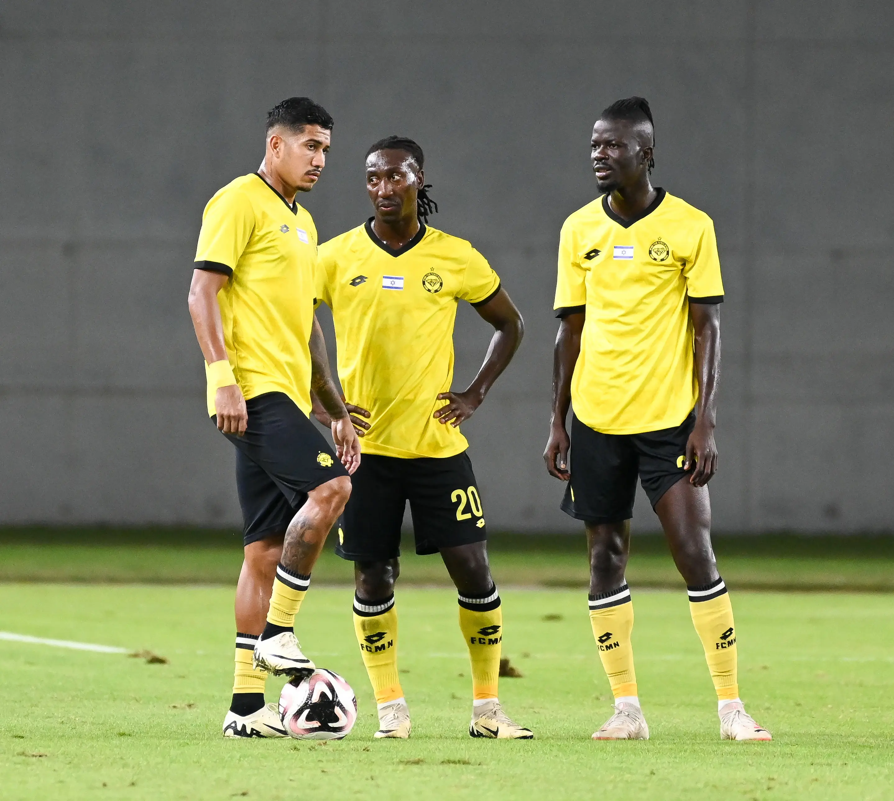 מוחמד ג'טיי (מימין), ז'אניו ביקל, פרדי ורגאס שחקני מכבי נתניה | ברני ארדוב