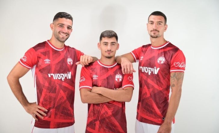 שחקני הפועל באר שבע אמיר גנאח, אור בלוריאן, רועי לוי עם המדים החדשים
