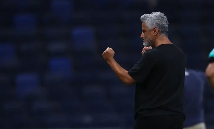 מיגל סילבה ושחקני בית"ר ירושלים חוגגים את הניצחון בחיפה | מאור אלקסלסי