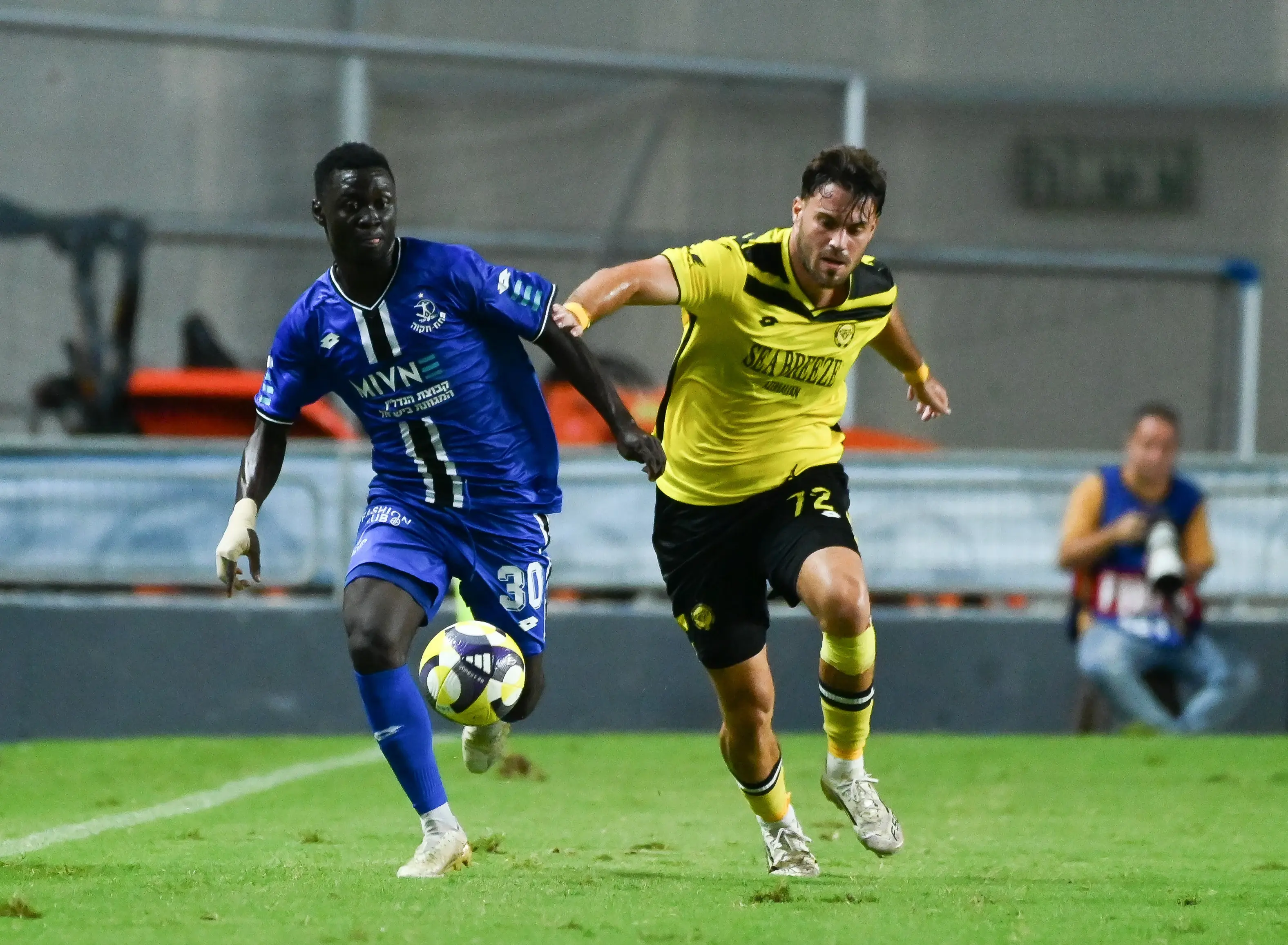 שחקן הפועל פתח תקוה, ז'וסלן טאבי, מול שחקן מכבי נתניה רותם קלר | ברני ארדוב
