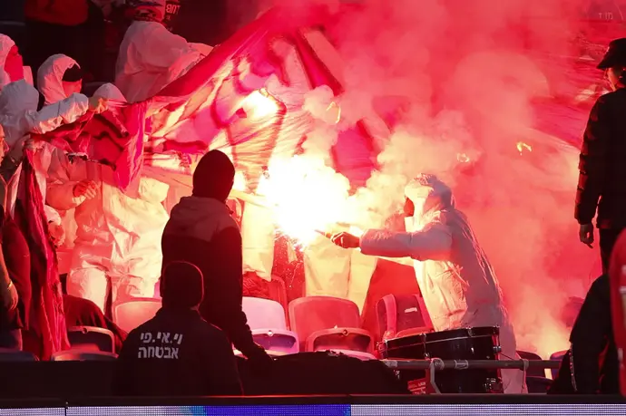 הבוקר (רביעי) הביאה המשטרה לבית משפט השלום בחיפה את אוהדי הפועל חיפה, ניר טולדנו (33) מנשר וניקיטה מישצ'נקו (21) מקריית מוצקין, שנעצרו אמש (שלישי) באצטדיון סמי עופר בעיר. המשטרה ביקשה להאריך את מעצרם, בחשד שבמהלך משחק הכדורגל בין הפועל חיפה לבני סכנין היו השניים בין האוהדים שהתנהגו בצורה פרועה, והדליקו אבוקות ביציע המזרחי במטרה לשרוף שלט גדול של אוהדי בני סכנין.