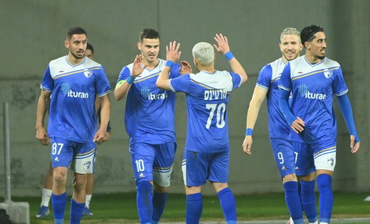 שרצקי, מרטינס, אוגריסה ושחקני קרית שמונה חוגגים | ברני ארדוב