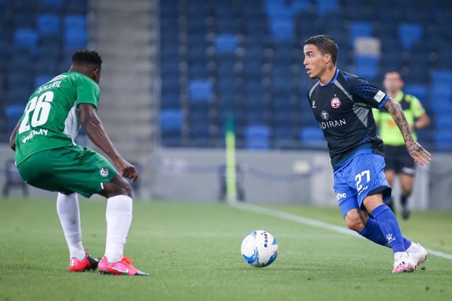כבר אחרי ארבע דקות מכבי חיפה הגיעה למצב הראשון במשחק. ניקיטה רוקאביצה קיבל כדור על סף הרחבה עם הגב לשער, הסתובב ובעט אך הכדור שלו היה גבוה ורחוק מהמסגרת.