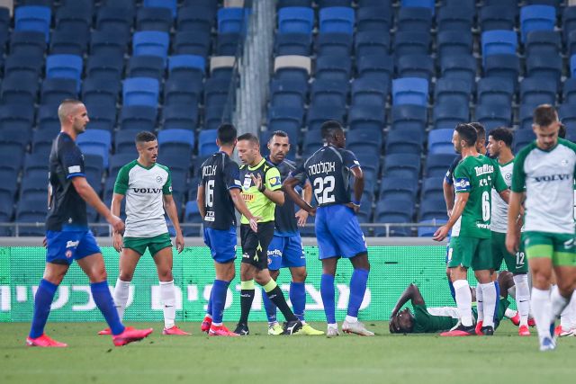 מכבי חיפה פתחה טוב ועלתה ל-0:1 כבר בדקה ה-12. ומי כבש את השער אם לא ניקיטה רוקאביצה? מלך שערי הליגה עלה למאזן של 20 כיבושים, אך בעונה כזו – כנראה שהכל הולך לו, כי הוא לא ממש התכוון לכבוש. סינטיהו סלליך העביר כדור רוחב מהאגף הימני, מקסים פלקושצ'נקו בעט מתוך הרחבה אל הרשת, כשבדרך הכדור פגע ברוקאביצה ונכנס.