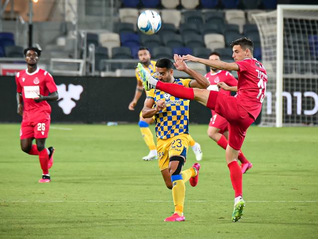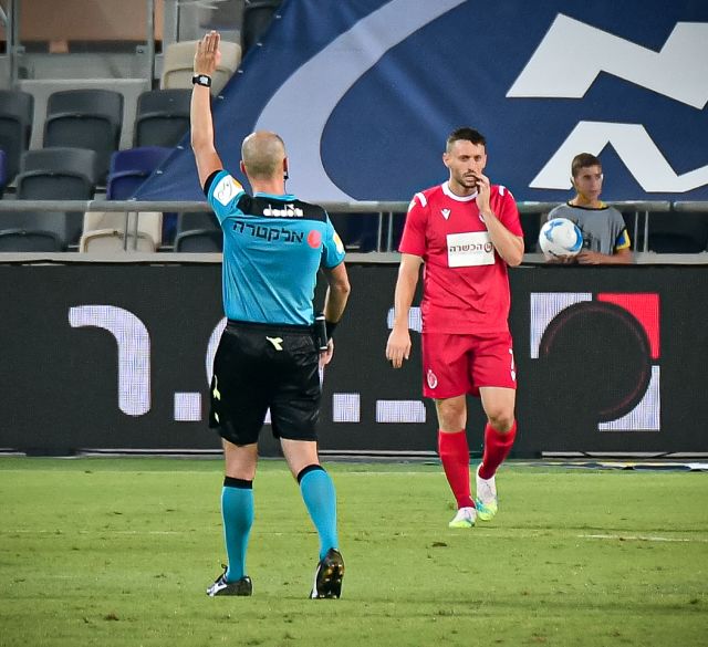 בדקה ה-42 ליידנר ביצע דאבל פס נהדר בצד שמאל והוציא כדור רוחב חזק, איאד אבו עביד הצטרף מאחור ובעט חזק אבל למרכז השער ודניאל טננבאום קלט. בכל מקרה זו הייתה ההתקפה הטובה ביותר של האדומים במשחק. כעבור דקה אילון אלמוג הסתובב יפה על המקום ומסר לניק בלקמן שעשה הכל לאט ונבלם על ידי רז שלמה אך השופט בכל מקרה הורה על נבדל. לפני ההפסקה דורון ליידנר הצעיר בעט כדור מחוץ לרחבה ואילץ את השוער למתוח איברים.