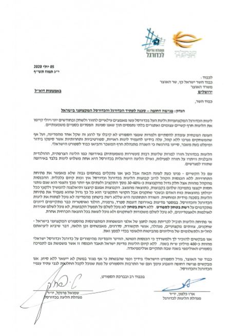 "ליגות הכדורגל המקצועניות וליגת העל בכדורסל עשו מאמצים עילאיים לחזור ולשחק ובחודשים יוני ויולי קיימו את הליגות חרף קשיים עצומים ואתגרים בלתי נתפסים" נכתב בפתיחת המכתב. "העונה הנוכחית עומדת להסתיים ולמרות שענפי הספורט לא קיבלו עד לרגע זה שקל אחד מהמדינה, ועל אף שהמשחקים נערכו ללא קהל, עלה בידינו להעמיד ליגות ראויות. אנו פונים כעת לעונה הבאה – ללא הכנסות הקהל, לרוב קבוצות הכדורגל והכדורסל אין זכות קיום כלכלית".