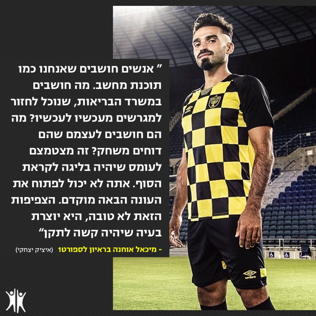 "בספורט לא אמורה להיות הגבלה של מגע, אבל אם זו תהיה הבעיה נמצא גם לה פתרון. הוכח כבר שבמהלך משחק לא מדביקים אחד את השני, אז אני לא רואה סיבה. בעזרת השם, אני מקווה שיחזירו לנו את הדבר שאנחנו הכי אוהבים. אסור לתת למצב הזה להימשך".