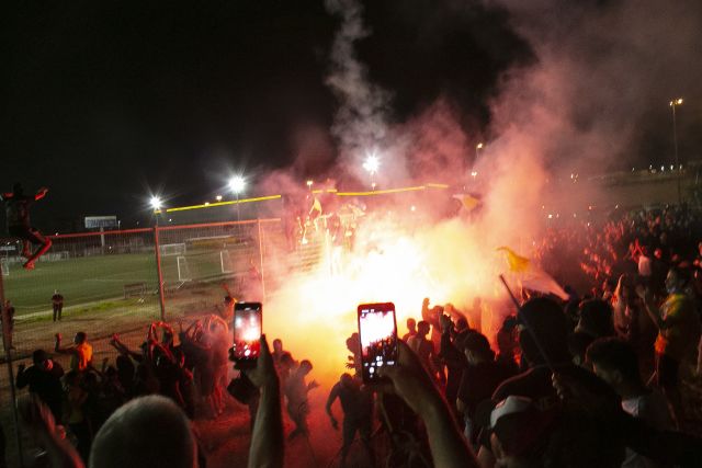 בניגוד לבקשת המועדון והוראות משרד הבריאות, כ-1,000 אוהדים הגיעו למתחם האימונים של מכבי ת"א על מנת לעודד את השחקנים לפני המשחק נגד החיפאים. הקהל שהגיע לקריית שלום הדליק אבוקות, שר שירים ובעיקר הבהיר לשחקנים בצהוב כי הם לפני משחק גורלי מאוד עבורם.