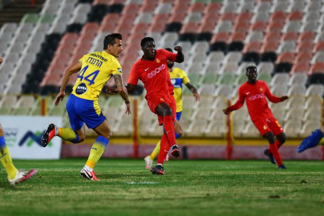 דקה 21, 0:1 למ.ס. אשדוד! דן ביטון איבד את הכדור לכנעאן, אשר מצא את באיו במרכז הרחבה והחלוץ האוגנדי הכניע את טננבאום מקרוב.