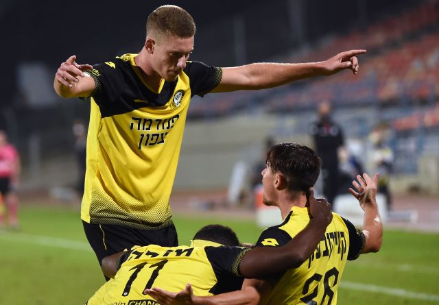 דקה 67, מכבי נתניה עלתה ל-2:3! עזרא דהר למרכז ובעט כדור מ-18 שפגע בדרך לבלוריאן וינקו נותר חסר אונים.