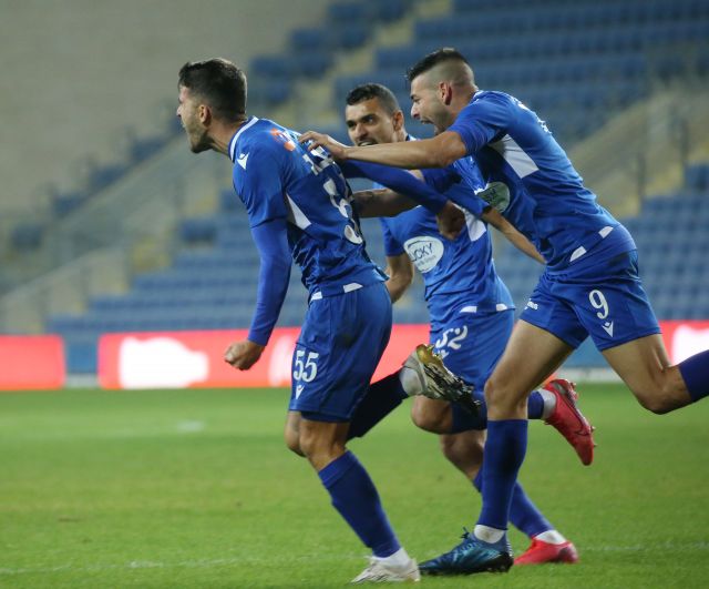 המלאבסים של גיא לוזון, שרשמו הפסד שני ברציפות, פתחו טוב והפתיעו עם 0:1 כבר בדקה הרביעית לאחר שליאל עבדה בישל לנאור סבג, אשר הכניע את ג'וש כהן לראשונה אחרי ארבעה משחקים. מאז – המשחק היה חד צדדי. הירוקים הגיבו מהר מאוד, וכבר בדקה השמינית השוו משער של ניקיטה רוקאביצה בנגיחה מקרוב אחרי קרן שהגביה צ'רון שרי. הקצב היה מצוין, ובדקה ה-45 הקבוצה מהכרמל גם זכתה בפנדל השישי שלה העונה אחרי נגיעת יד של אור בלוריאן ברחבה. מוחמד אבו פאני ניגש לנקודה הלבנה, אך שלח את הכדור לקורה בלבד ופספס הזדמנות לקבוע מהפך רגע לפני הירידה למחצית ואולי להפוך את המשחק להרבה יותר קל.