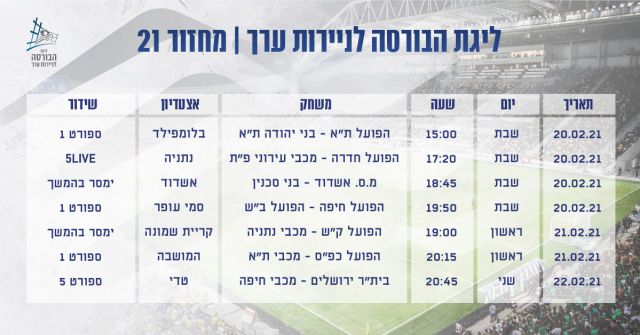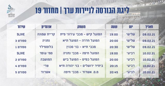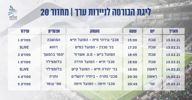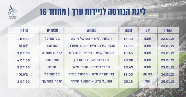 באשר למשחקי ההשלמה: המפגש בין הפועל קריית שמונה למ.ס. אשדוד מהמחזור ה-14 יתקיים ביום רביעי, 17.02, בשעה 19:00 ושעה לאחר מכן ייצא לדרך באצטדיון דוחא המשחק בין בני סכנין לבית"ר ירושלים מהמחזור ה-10 והוא ישודר בספורט1.