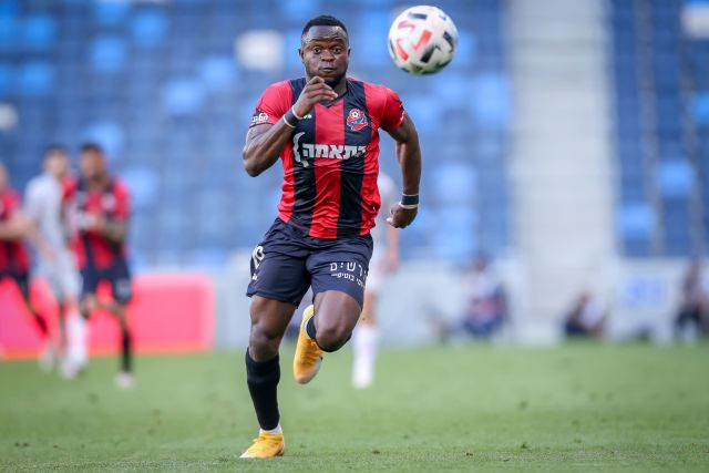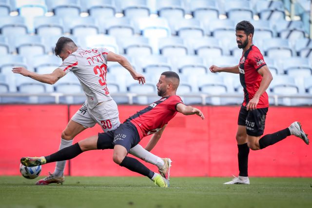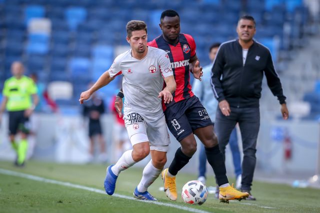דקה 90+3 – הפועל חיפה כמעט השלימה מהפך. אגאדה הפעלתן מסר לפדידה שהטעה שחקן ובעט מעל השער.