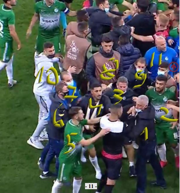 בנוסף, האדומים טענו לאכיפה בררנית בכך שלא הוגשה תלונה נגד מוחמד אבו פאני ודודו בזק, דובר הירוקים וצירפו לכתב ההגנה את התלונות נגד השניים: "כתב האישום הוגש תוך אכיפה בררנית ואפליה פסולה, שכן בידיעת המאשימה והתובע מטעמה זהות משתתפים רלוונטיים נוספים במהומה, אך המאשימה בחרה, באופן מוזר ומתמיה, שלא להאשים גם אותם"