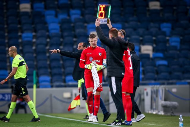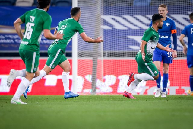 הקצב נמשך, הירוקים לחצו, ובדקה ה-24 גם השיגו מהפך, ובאיזה סטייל הם עשו את זה. מוחמד אבו פאני כבש סוף סוף שער ראשון העונה אחרי לא מעט החמצות מתסכלות, והוא סיפק ביצוע גדול. קשר נבחרת ישראל שלח בעיטה מסובבת מ-22 מטרים בדיוק מושלם אל בין החיבורים והעניק יתרון למוליכת הטבלה. זה ממש לא נגמר כאן, כאשר שוער ק"ש, דז'יוגאס ברטקוס, הורחק בדקה ה-31. יאניק וילדסחוט הוציא את הליטאי מכליו כאשר הפריע לו לשחרר כדור, והשוער באקט של עצבים בעט על ההולנדי את הכדור. השופט דניאל בר נתן מיד שלף לברטקוס אדום, שאושר אחרי בדיקת VAR, ונדב זמיר הצעיר נכנס אל בין הקורות כאשר החליף את מייקל אמאנגה.